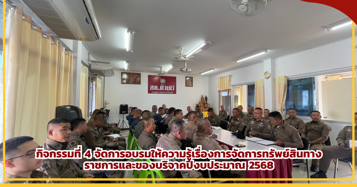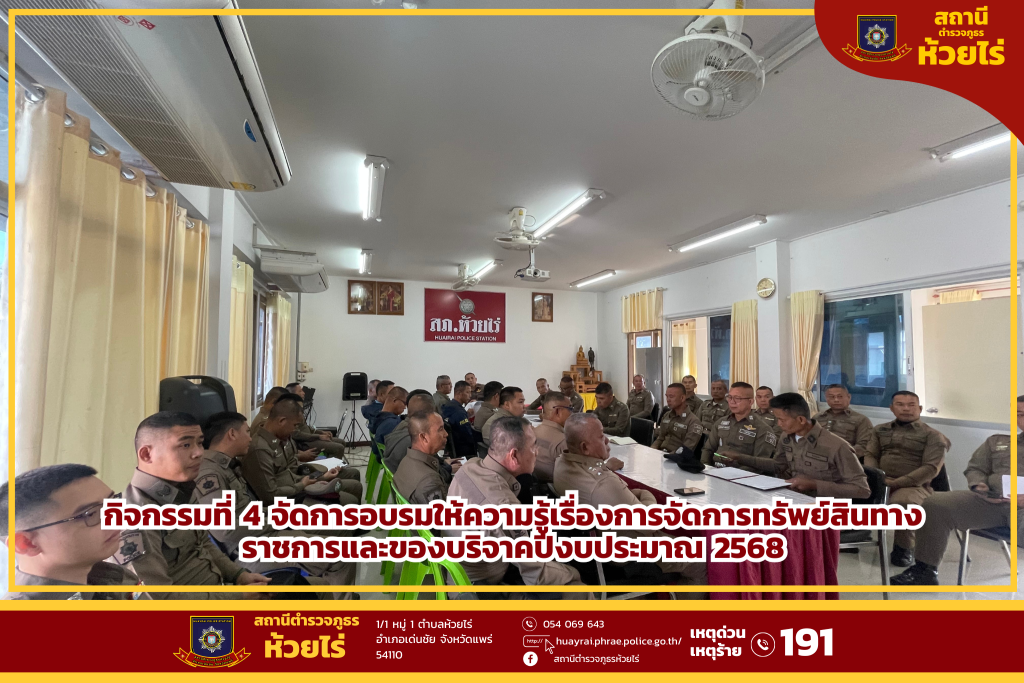 วันที่ 25 ม.ค.68 เวลา 09.00 น. พ.ต.ท.วิทูร ตั้งวุฒิสาร สวญ.สภ.ห้วยไร่ ได้เรียกข้าราชการตํารวจในสังกัดเข้ารับการอบรมชี้แจงเรื่องการจัดการทรัพย์สินทางราชการ ของบริจาคและการจําหน่ายของกลางในคดี ให้ข้าราชการตํารวจในสังกัดทุกนายได้ทราบ ณ ห้องประชุม ศปก.สภ.ห้วยไร่