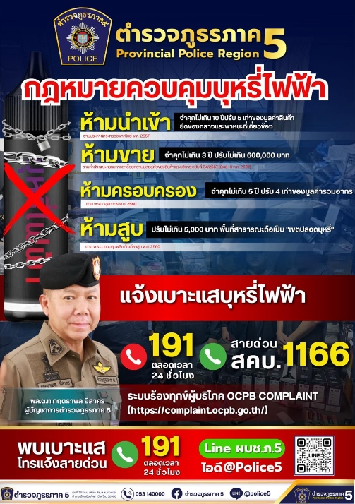 ตำรวจภูธรภาค 5 เตือน!! บุหรี่ไฟฟ้าผิดกฎหมาย
