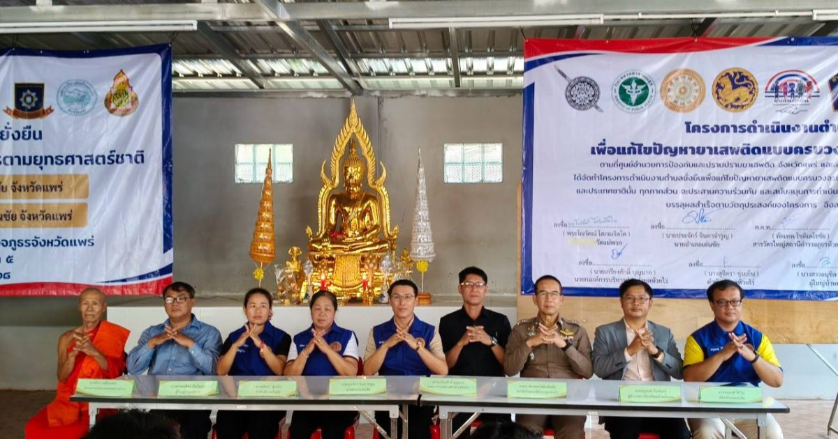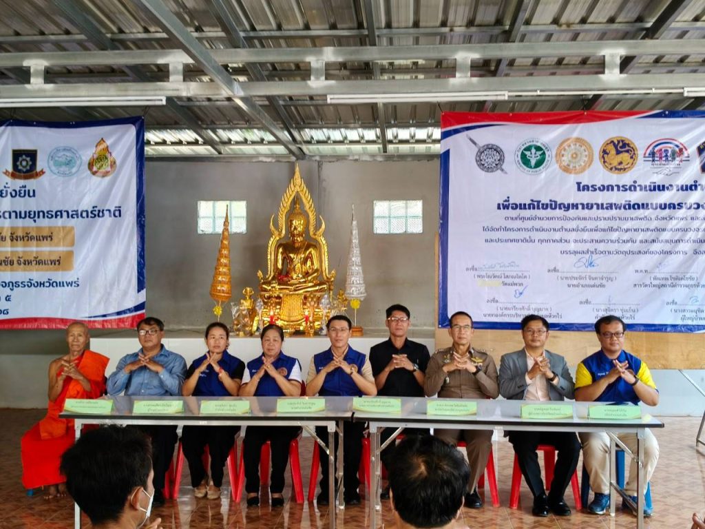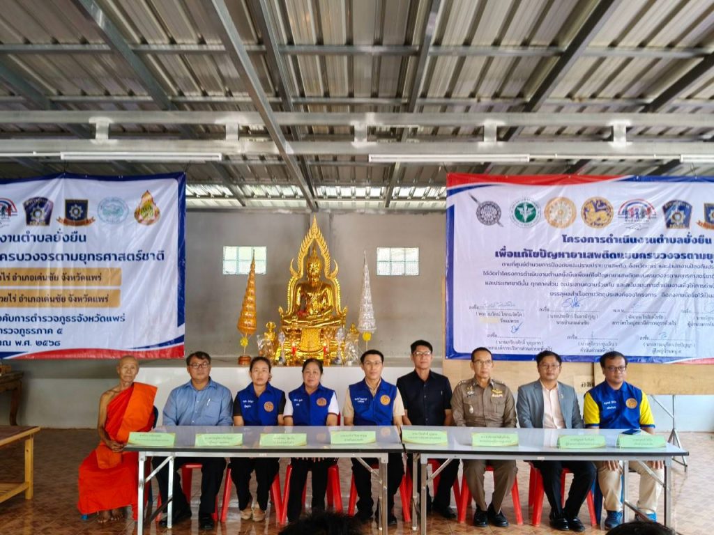 วันที่ 12 มีนาคม 2568 เวลา 09.00 น. พ.ต.ท.ทัตเทพ โชติเดโชชัย สวญ.สภ.ห้วยไร่,พ.ต.ท.ยุทธนา ธิมา สว.สส.ฯ, พ.ต.ท.วิทูล สีตะวัน สวป.ฯ,พ.ต.ท นันทวัฒน์ หวังสวัสดิ์ สวป.ฯ ชุดทำงานตำบลยั่งยืนฯ,ชุดสืบสวน สภ.ห้วยไร่,นายก อบต.ห้วยไร่,กำนันตำบลห้วยไร่, ผอ.รพ.สต.น้ำแรม,ผู้อำนวยการโรงเรียนบ้านน้ำแรม,ผู้ใหญ่บ้านหมู่ 5, ประชาชนหมู่ 5,6 ,เปิดโครงการตำบลยั่งยืนเพื่อแก้ไขปัญหายาเสพติดอย่างยั่งยืน ปี 68 ร่วมลงนามบันทึกข้อตกลงความร่วมมือ (MOU) และร่วมกันทำประชาคม ซึ่งผู้มาร่วมพิธีเปิดมีมติเห็นชอบมติชุมชน ตามหัวข้อที่กำหนดทุกหัวข้อ ณ ศาลาการเปรียญวัดแม่พวก ต.ห้วยไร่ อ.เด่นชัย จ.แพร่ โดยมี นายประจักร์ จินดาจำรูญ นายอำเภอเด่นชัย เป็นประธานในพิธีฯ