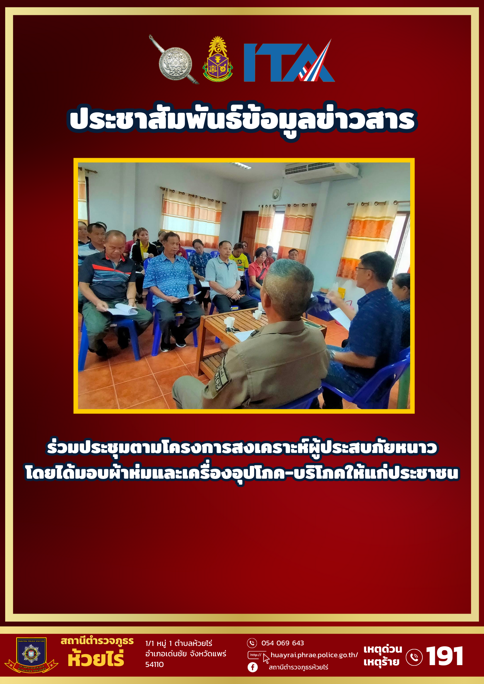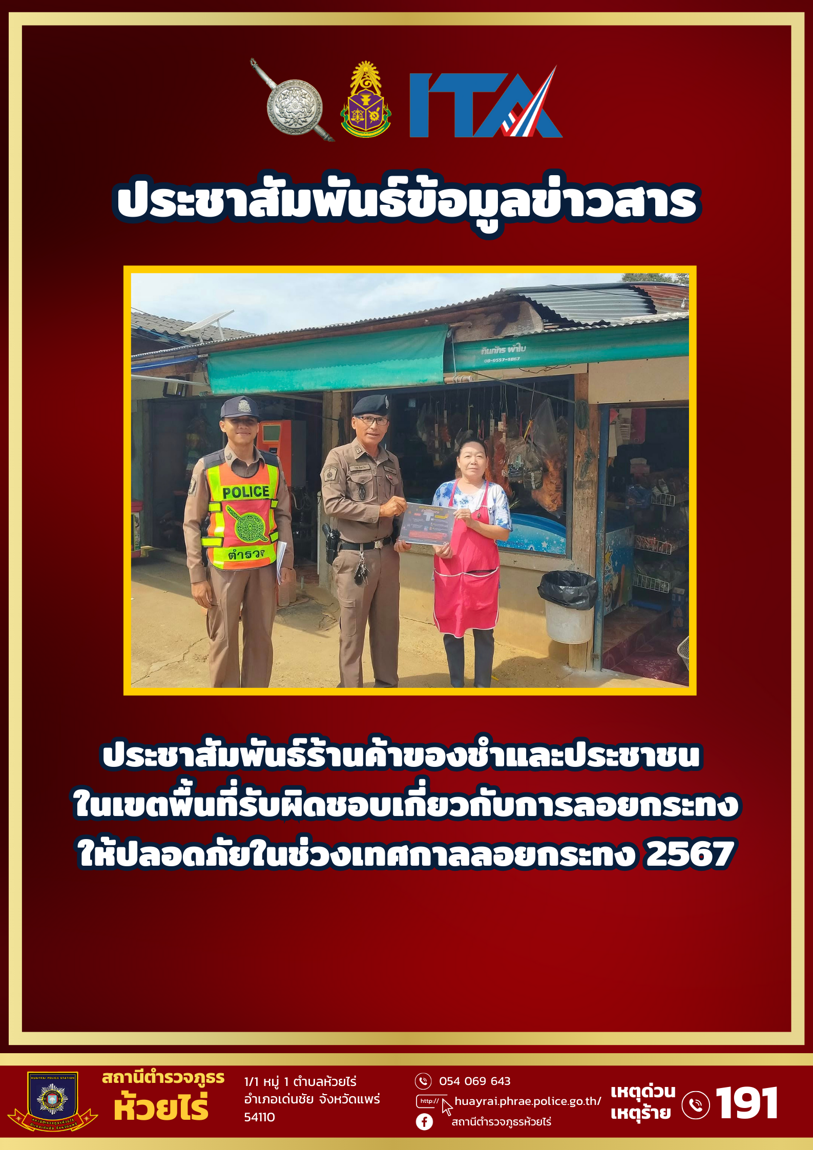 29 พ.ย.67 เวลา 10.00 น. พ.ต.ท.วิทูร ตั้งวุฒิสาร สวญ.สภ.ห้วยไร่ มอบหมายให้ พ.ต.ท.วิทูล สีตะวัน สวป.สภ