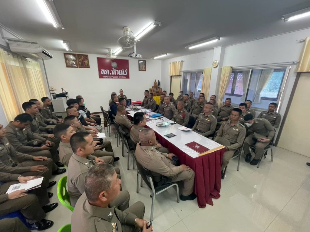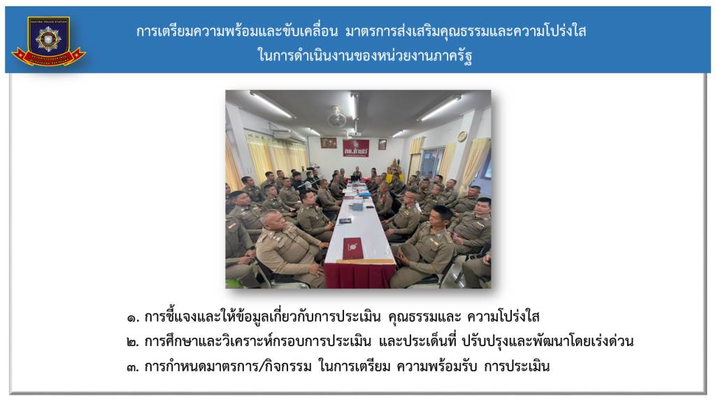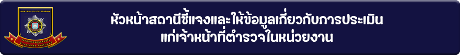 - หัวหน้าสถานีตำรวจชี้แจงและให้ข้อมูลเกี่ยวกับการประเมินแก่เจ้าหน้าที่ตำรวจในหน่วยงาน