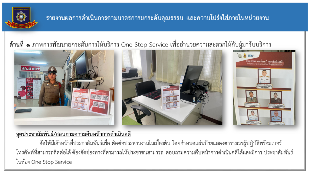- 1) ภาพการพัฒนายกระดับการให้บริการ One Stop Service เพื่ออำนวยความสะดวกให้กับผู้มารับบริการ