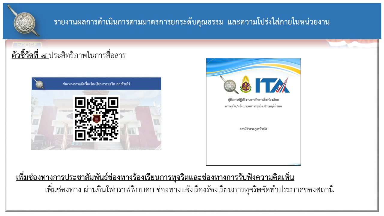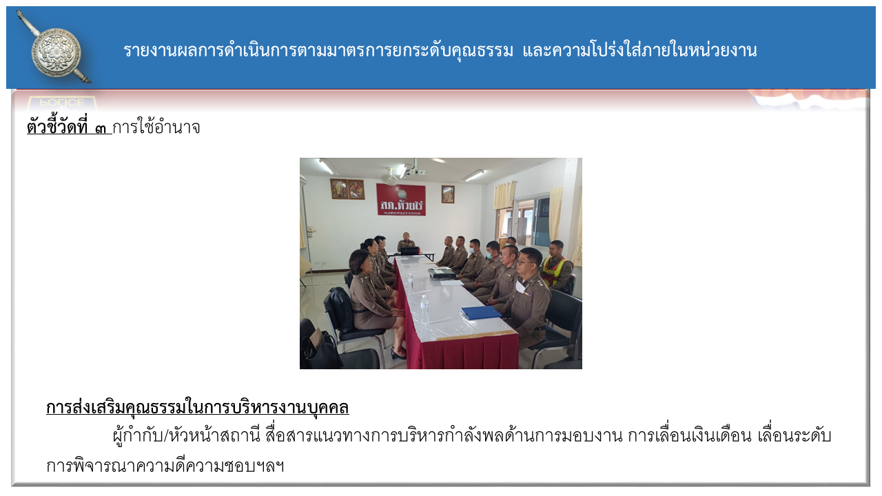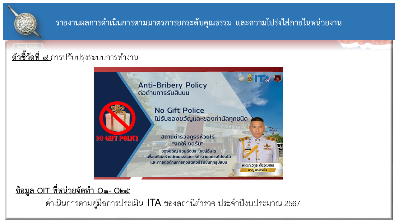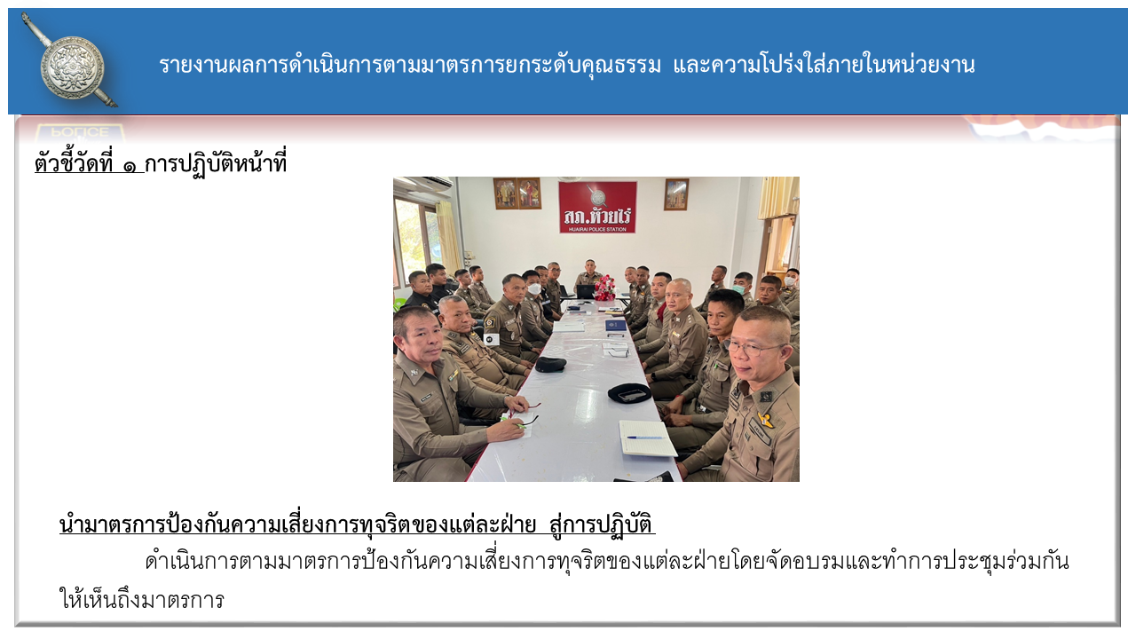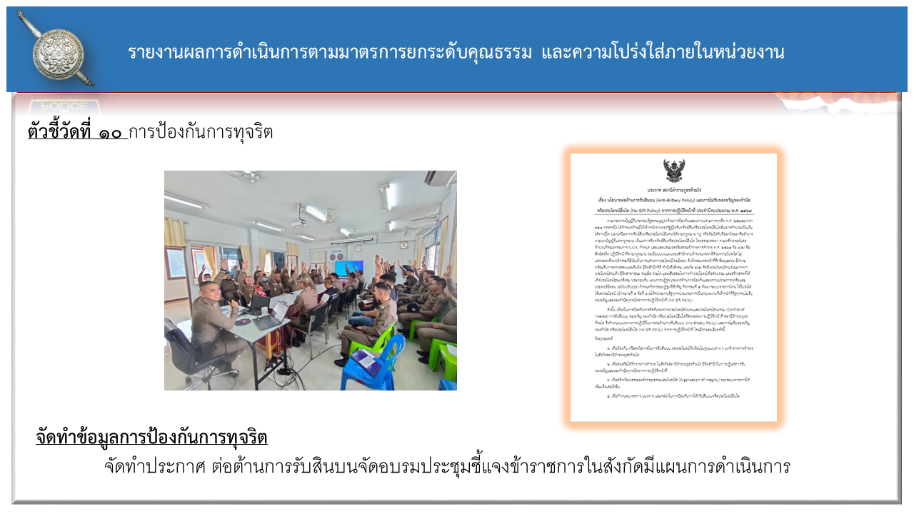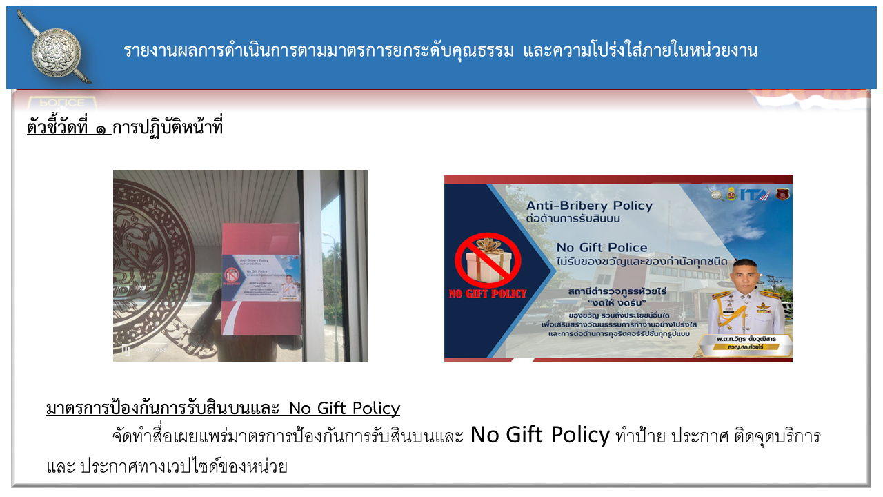 O25 รายงานผลการดำเนินการตามมาตรการส่งเสริมคุณธรรมและความโปร่งใสภายในหน่วยงาน